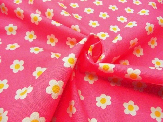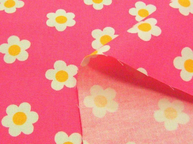 かわいいデイジー柄のコットンオックスプリント(ピンク)